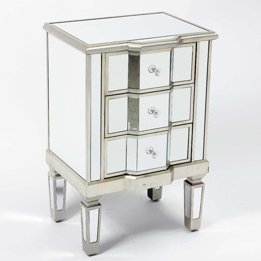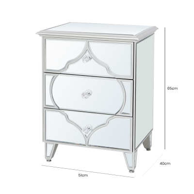 Marrakech Silver Mirror 3 Drawer Bedside Cabinet
