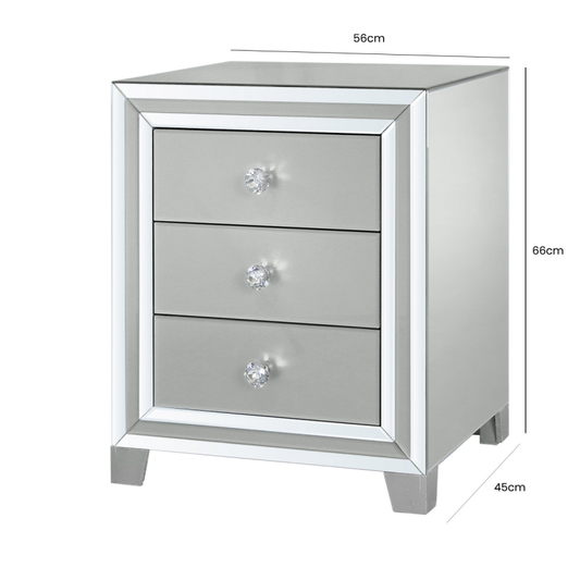 Grey Manhattan Mirror 3 Drawer Bedside Cabinet