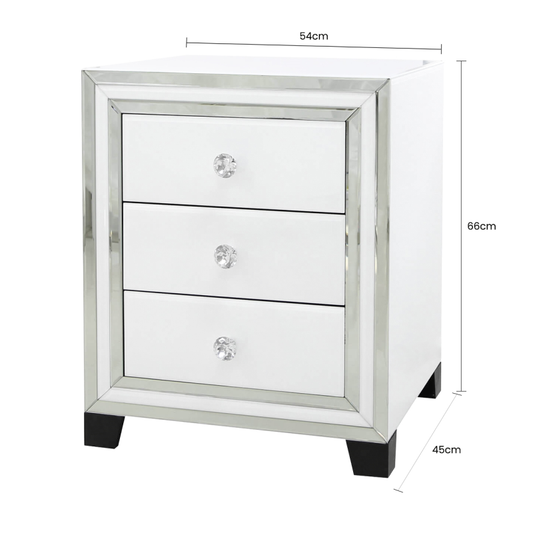 White Manhattan Mirror 3 Drawer Bedside Cabinet