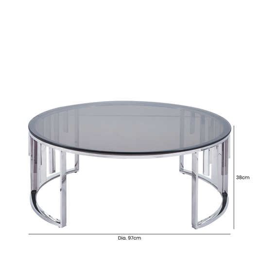 Osen Round Chrome Metal with Smoke Glass Top Coffee Table