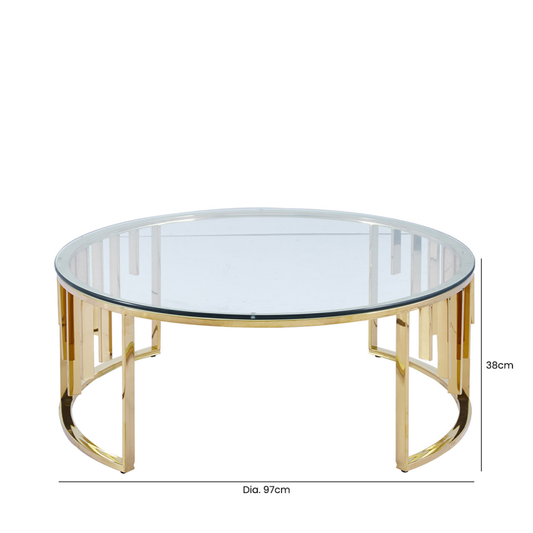 Osen Round Gold Metal with Clear Glass Top Coffee Table