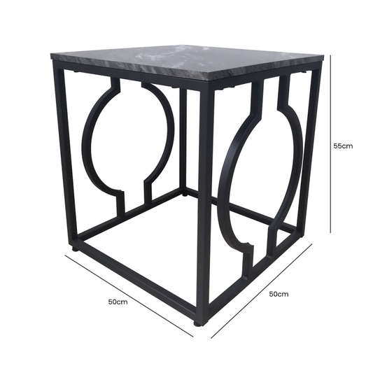 Aamari Grey Gunmetal with White Faux Marble Glass Top End Table