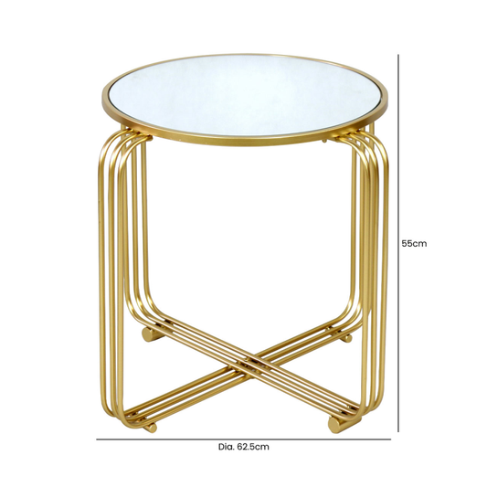 Elon 2 Drawer Bedside Cabinet Gold with Gold Mirror Top and Silver Handles