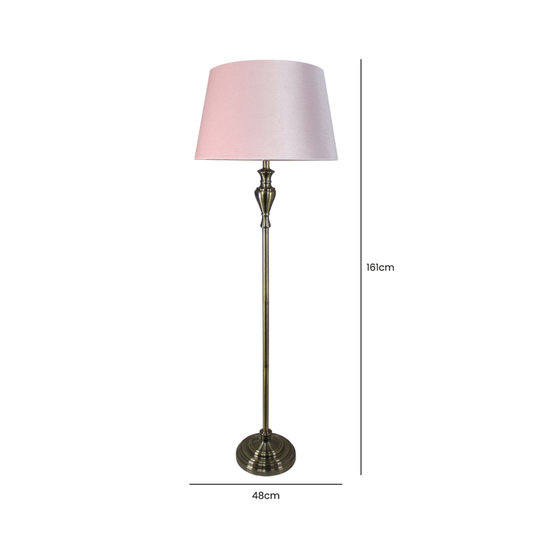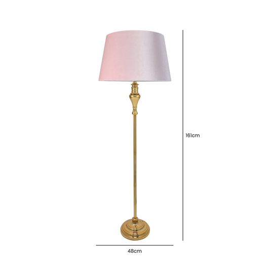 Large Gold Plated Floor Lamp With Blush Pink Velvet Empire Shade