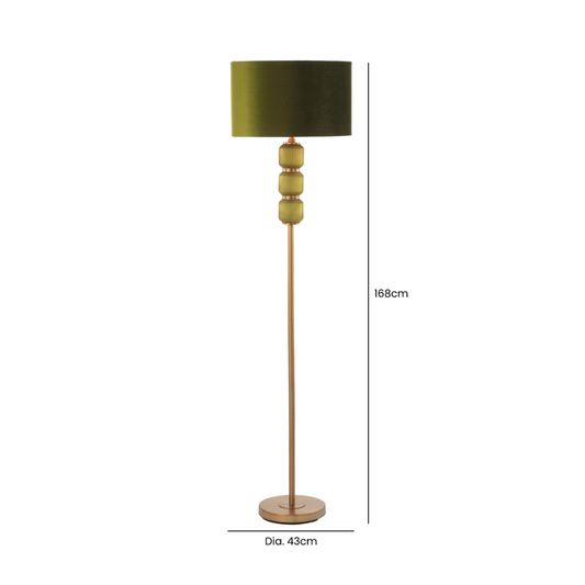 168cm Frost Green Pleated Glass with Green Velvet Shade Floor Lamp