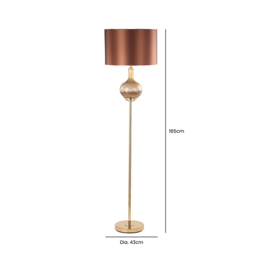 165cm Two Tone Brown Glass Floor Lamp with Dark Brown Satin Shade