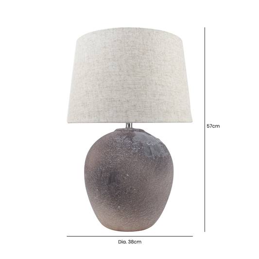 57cm Light Brown Stone Finish Table Lamp with Natural Linen Shade