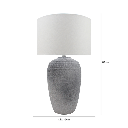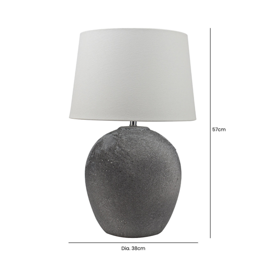 57cm Grey Stone Finish Table Lamp with White Linen Shade