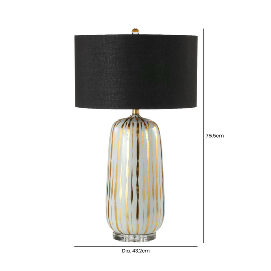 75.5cm Gold and White Ceramic Table Lamp wih Black Linen Shade