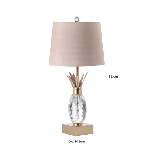 64.1cm Champagne Metal with Pineapple Glass and Taupe Faux Silk Shade Table Lamp
