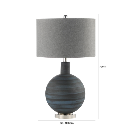 72cm Blue and Black Stripe Glass with Grey Linen Shade Table Lamp