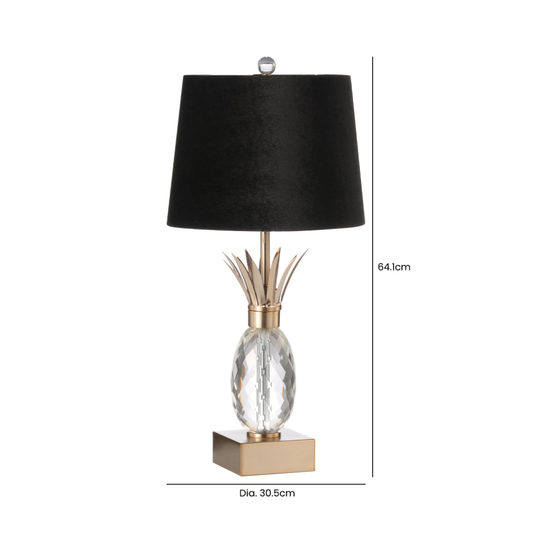 64.1cm Champagne Metal Table Lamp with Pineapple Glass and Black Velvet Shade