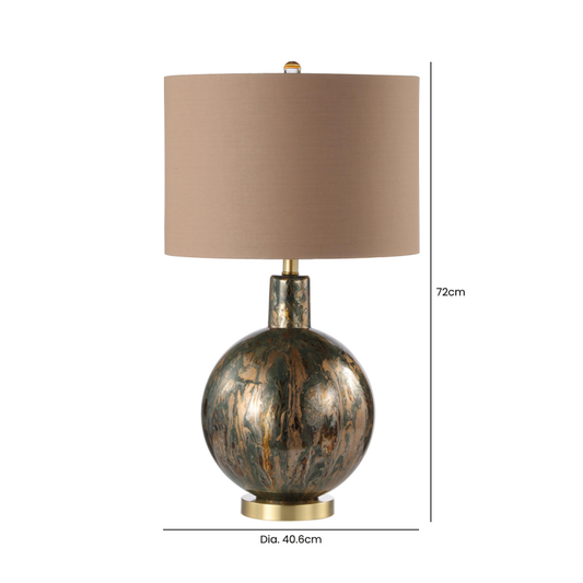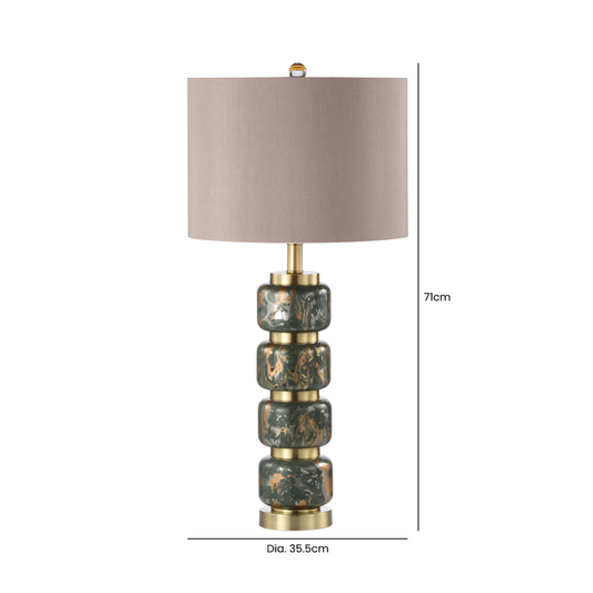 72cm Green Gold Abstract Glass Table Lamp with Taupe Faux Silk Shade