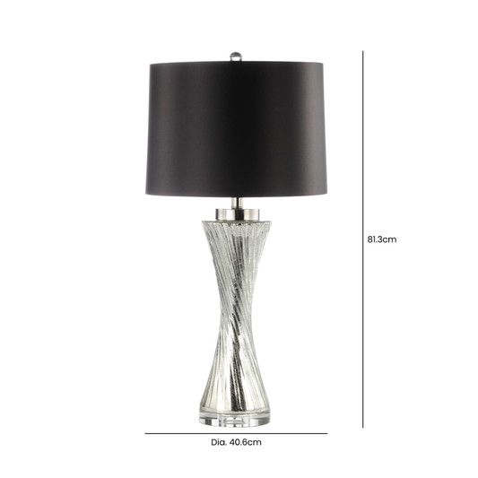 81.3cm Silver Twist Table Lamp with Black Satin Shade