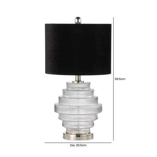 59.5cm Clear Glass Table Lamp with Black Velvet Shade Silver Inside