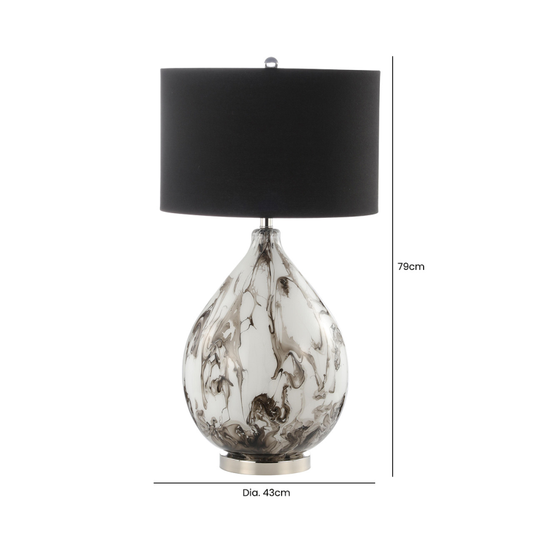 79cm White and Black Abstract Glass Table Lamp with Black Linen Shade