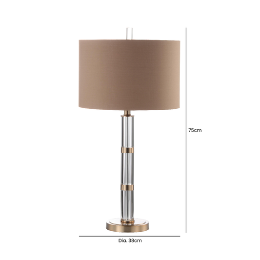 75cm Clear and Champagne Gold Table Lamp with Dark Taupe Faux Silk Shade