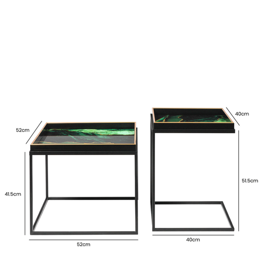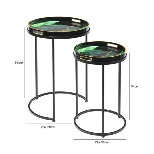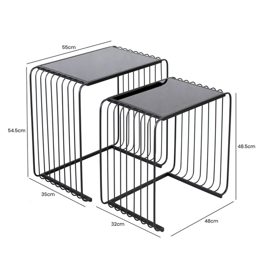 Set of 2 Black Metal with Black Glass Top Nesting Table