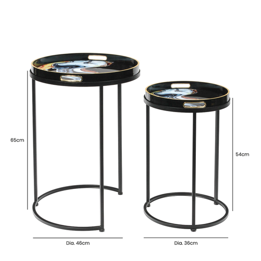 Olin Set of 2 Black Blue and Yellow Nesting Tables
