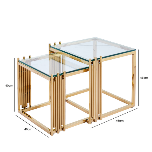Cohen Set of 2 Gold Steel Tubes and Clear Glass Nesting Table