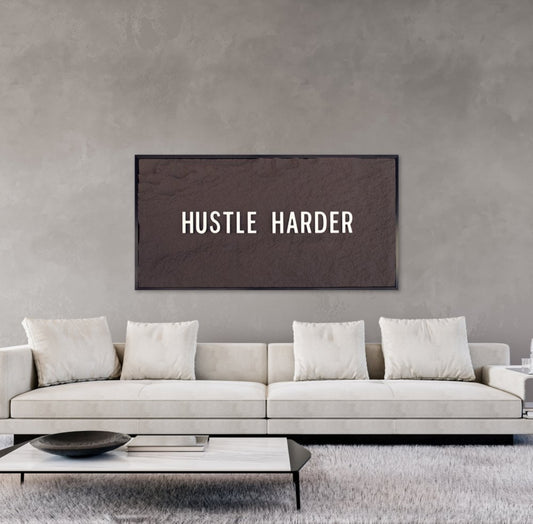 HUSTLE HARDER - WHITE 3D TEXT ON ESPRESSO