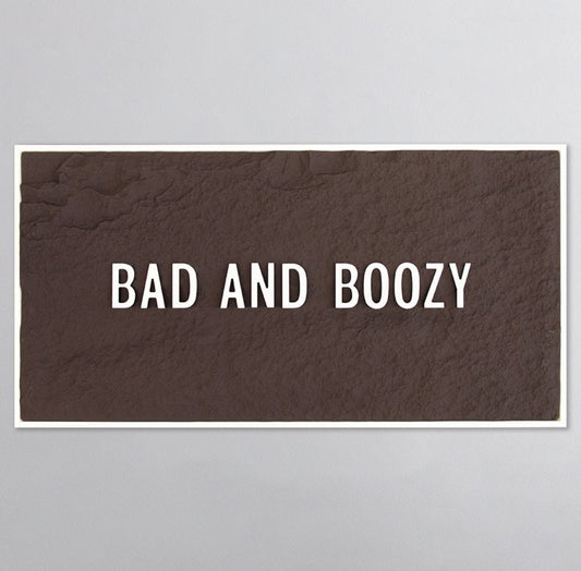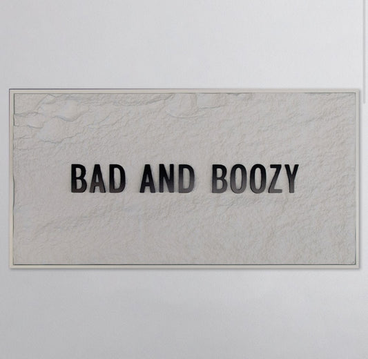 BAD & BOOZY - BLACK 3D TEXT ON ALABASTER