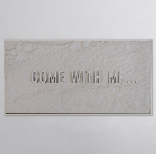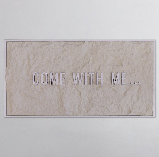COME WITH ME - WHITE 3D TEXT ON ALABASTER