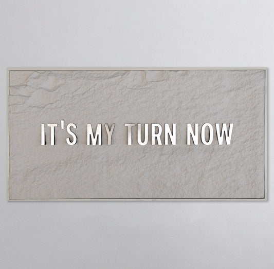 IT'S MY TURN NOW - SILVER 3D TEXT ON ALABASTER