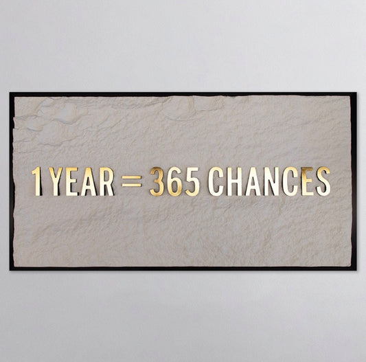 1 YEAR = 365 CHANCES - GOLD 3D TEXT ON ALABASTER