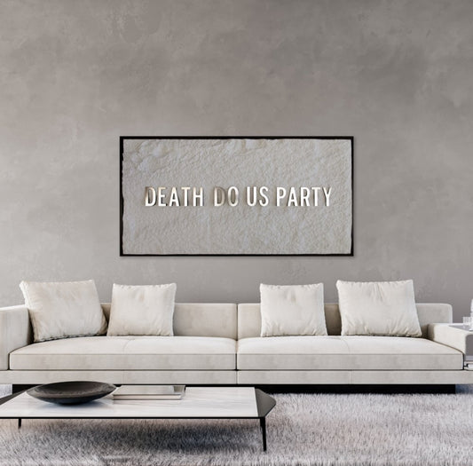 DEATH DO US PARTY - SILVER 3D TEXT ON ALABASTER