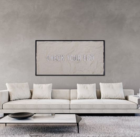 CHECK YOUR EGO - WHITE 3D TEXT ON OFF WHITE