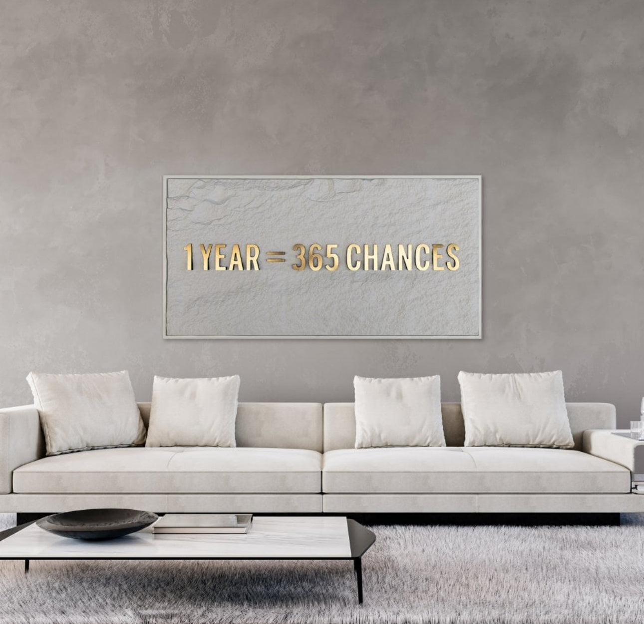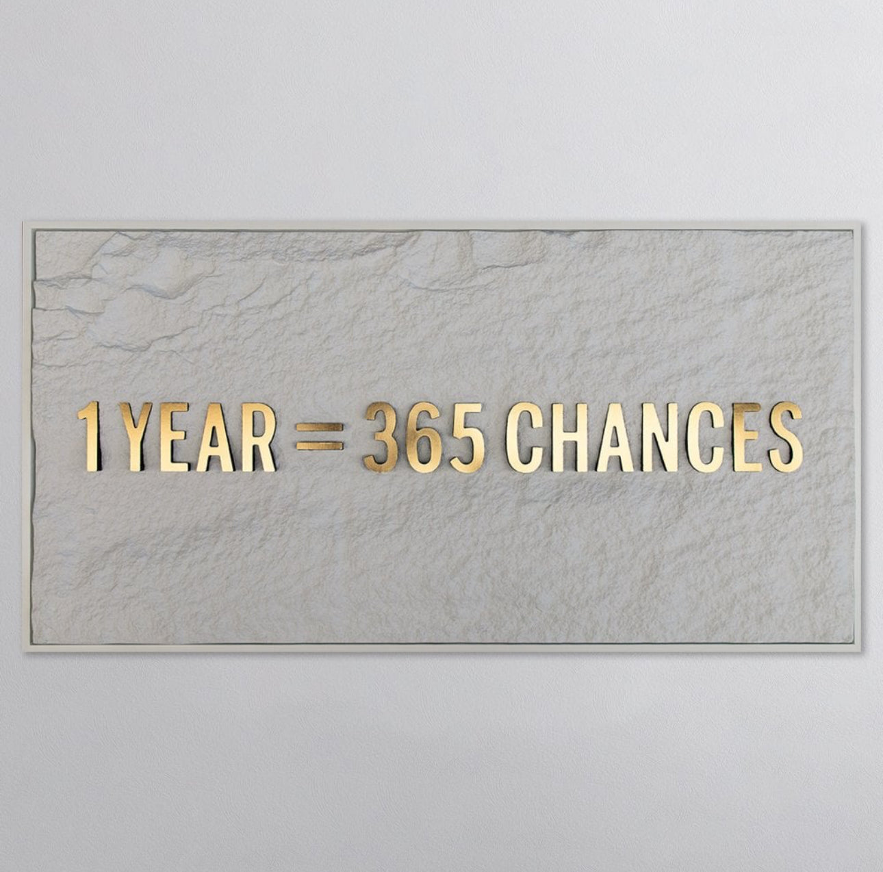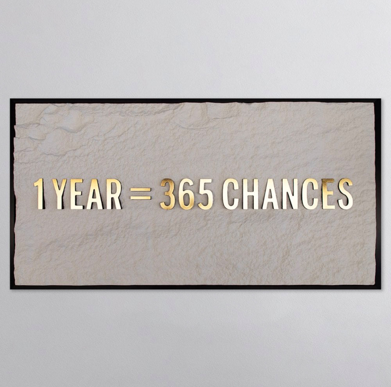 1 YEAR = 365 CHANCES - GOLD 3D TEXT ON ALABASTER