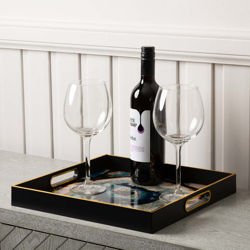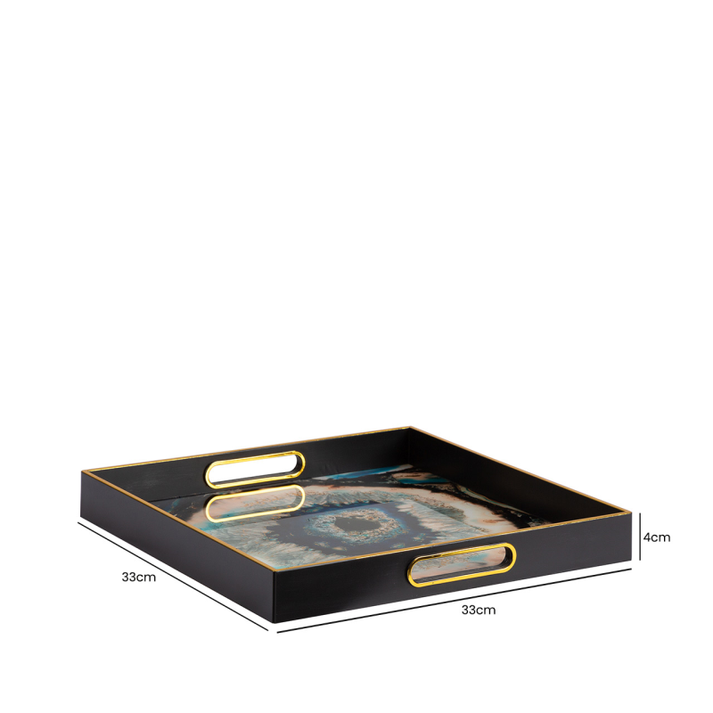 Add a sophisticated element to your entertaining with our 33cm blue and white abstract square tray. Made of glass and plastic, the tray is sturdy enough for serving canapes and drinks or simply adding an injection of colour to your entertainment area, dining room or kitchen.