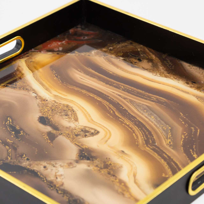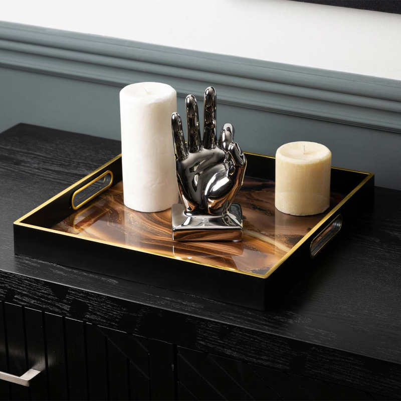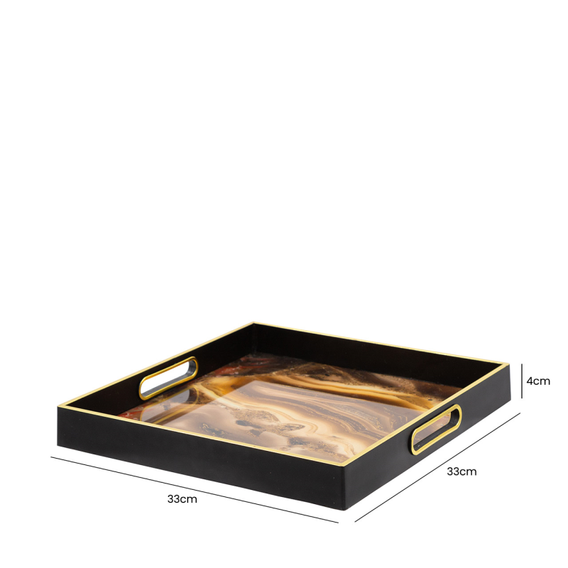 Entertain in style with this black and gold marble effect 33cm square tray with black and gold trim fit even for a diplomat’s confectionary!