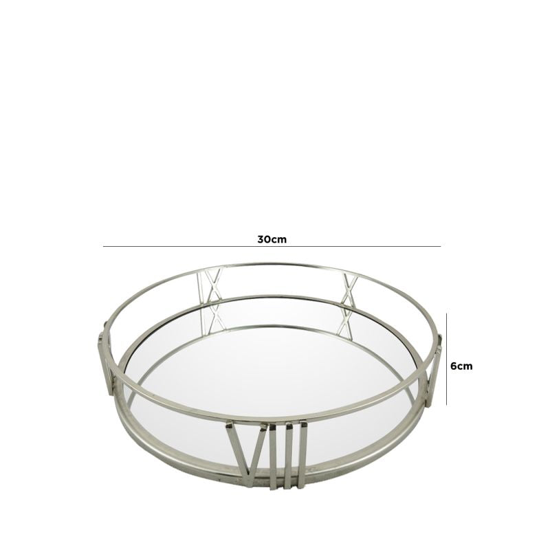 Value 30cm Roman Numeral Metal and Mirror Tray