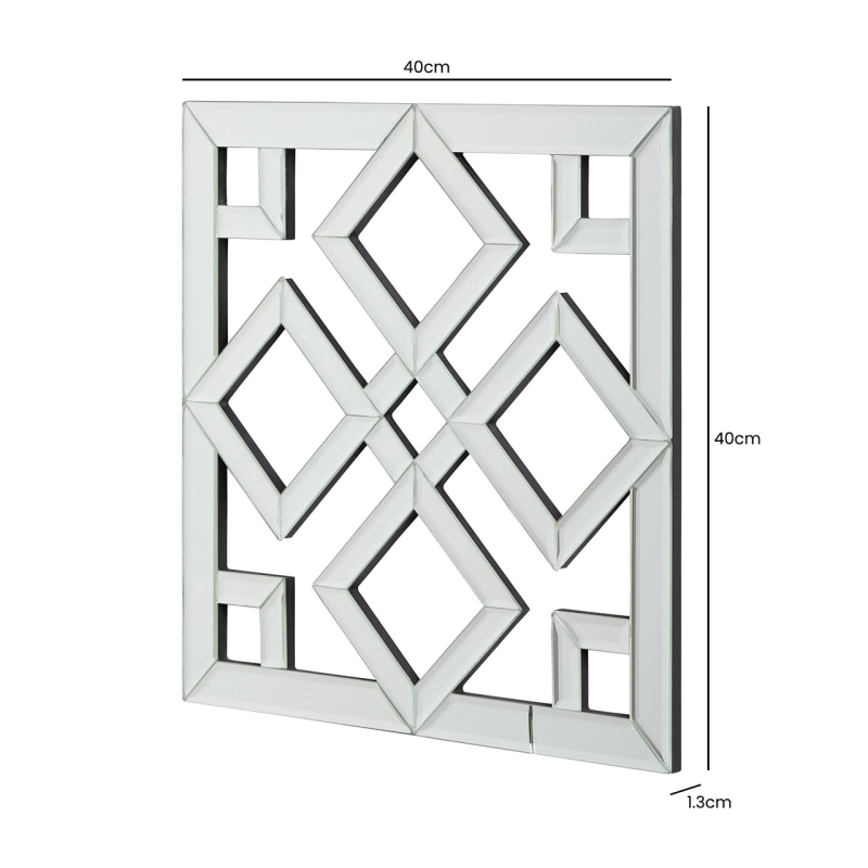 Add a touch of style and sophistication to any wall with the geometric cut mirror wall art. Featuring a 40cm x 40cm frame with cut mirror arranged to form a eye-catching pattern.