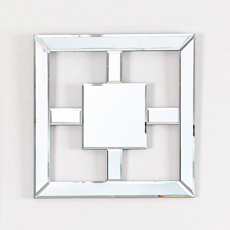 Complete your artistic vision with this delightful square mirror wall art that will add a glamorous touch to any wall. It features a clear mirror bevelled frame with a central mirrored suqare shape. Use individually or group any number together to reflect light and create a unique and eye-catching pattern.