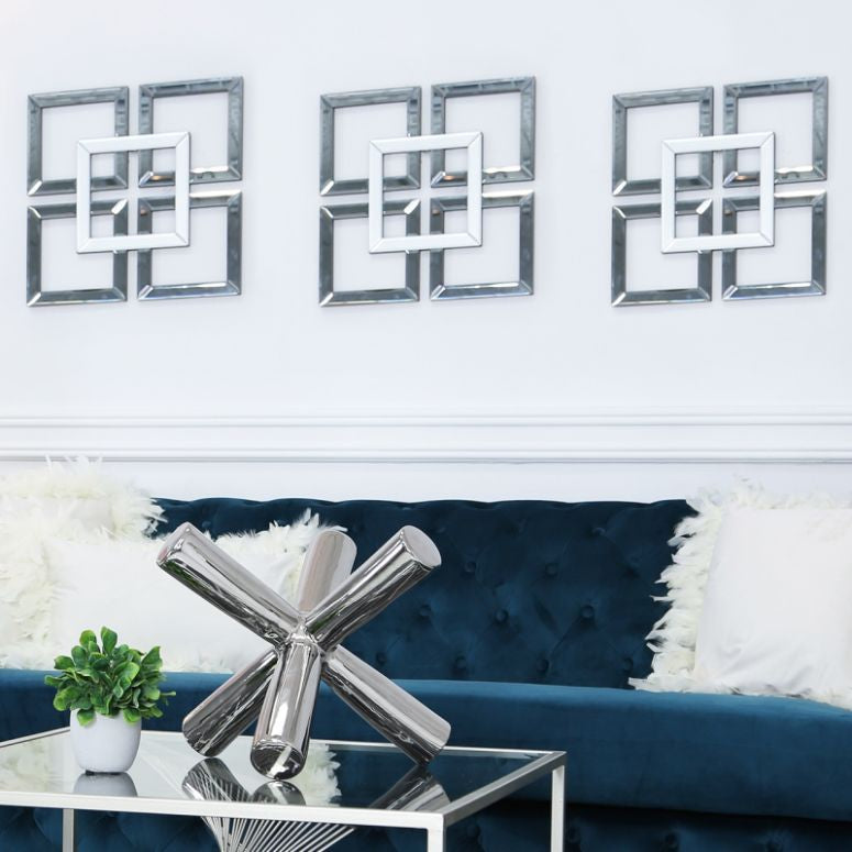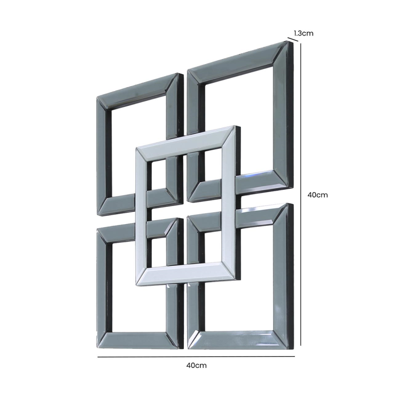 Enhance your living space with this small Manhattan geometric smoked mirror wall art. This decorative piece features 4 clear mirrored frames with a conjoined square smoked mirror frame in the middle. Use individually or group any number together to reflect light and create a unique and eye-catching pattern