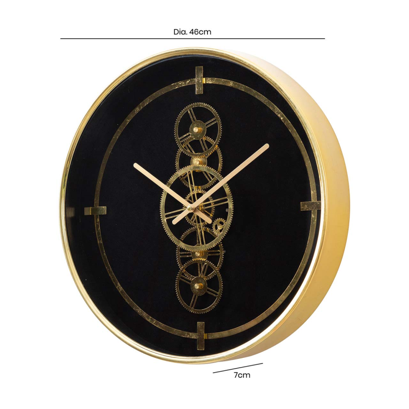 With a Black dial and Gold detailing and surround, this wall clock also has moving gears. This modern timepiece is functional as it is elegant and will bring a touch of class to any interior.