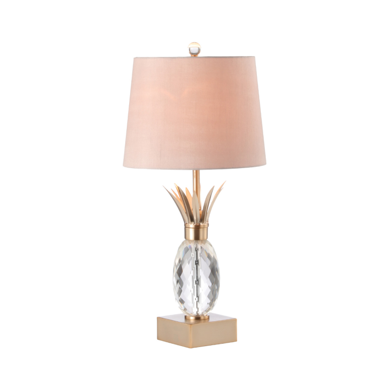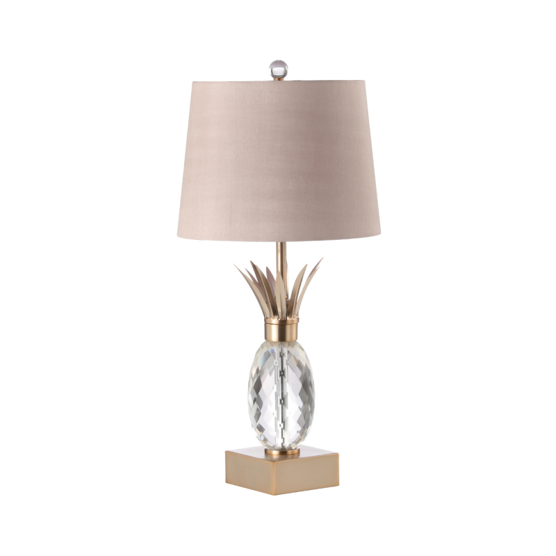 64.1cm Champagne Metal with Pineapple Glass and Taupe Faux Silk Shade Table Lamp