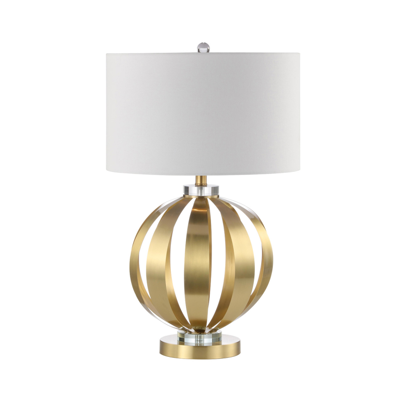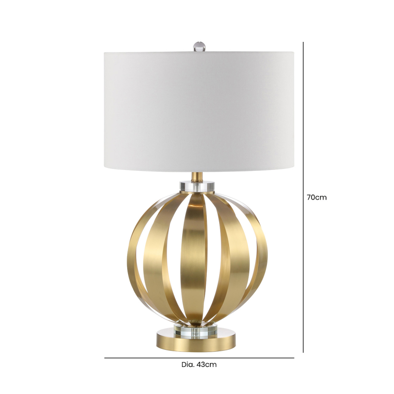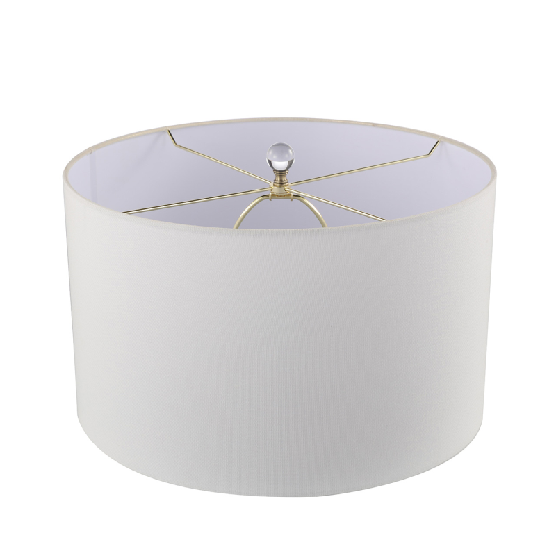 This lamp features a sleek and sturdy gold finish base paired with a white linen shade, creating a classic and versatile design that complements various decor styles. The lamp is expertly crafted from high-quality material, offering durability and a luxurious appearance.