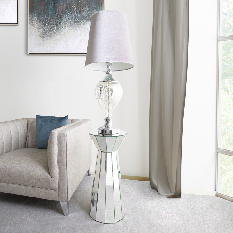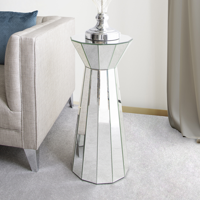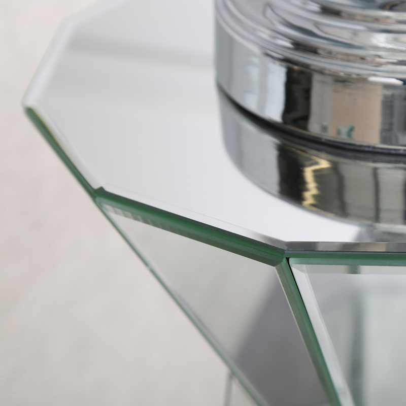 Value 72cm Round Mirror End Table with a touch of a modern look built using a combination of mirror glass and wooden frames.