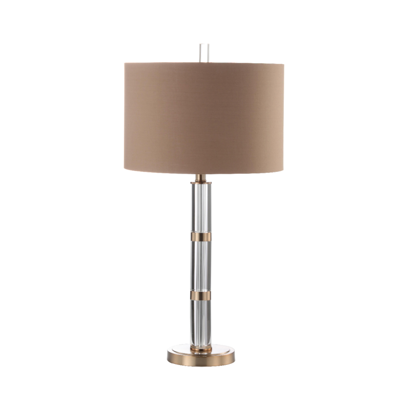 Our clear and champagne gold table lamp with dark taupe faux silk shade, is a stunning and sophisticated lighting option that adds a touch of glamour to any room. This lamp features a clear glass base with champagne gold accents, perfectly complemented by a dark taupe faux silk shade for a luxurious and refined look.