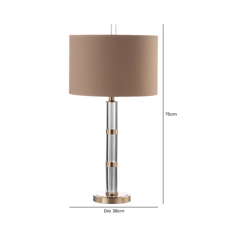 75cm Clear and Champagne Gold Table Lamp with Dark Taupe Faux Silk Shade