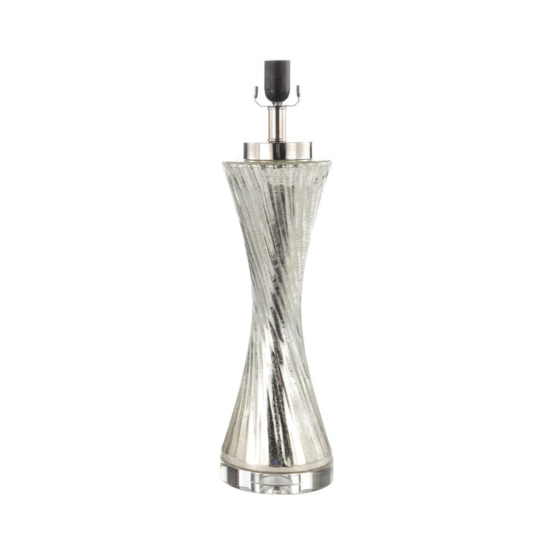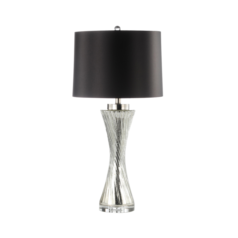 Our Silver Twist Table Lamp with Black Satin Shade is a captivating lighting fixture that combines sleek modern design with a touch of artistic flair. This lamp is a true statement piece that will elevate the ambiance of any room with its unique silver twist base and elegant black satin shade. The lamp's base features a stunning silver finish with a twist design, adding a sense of visual intrigue and contemporary sophistication.