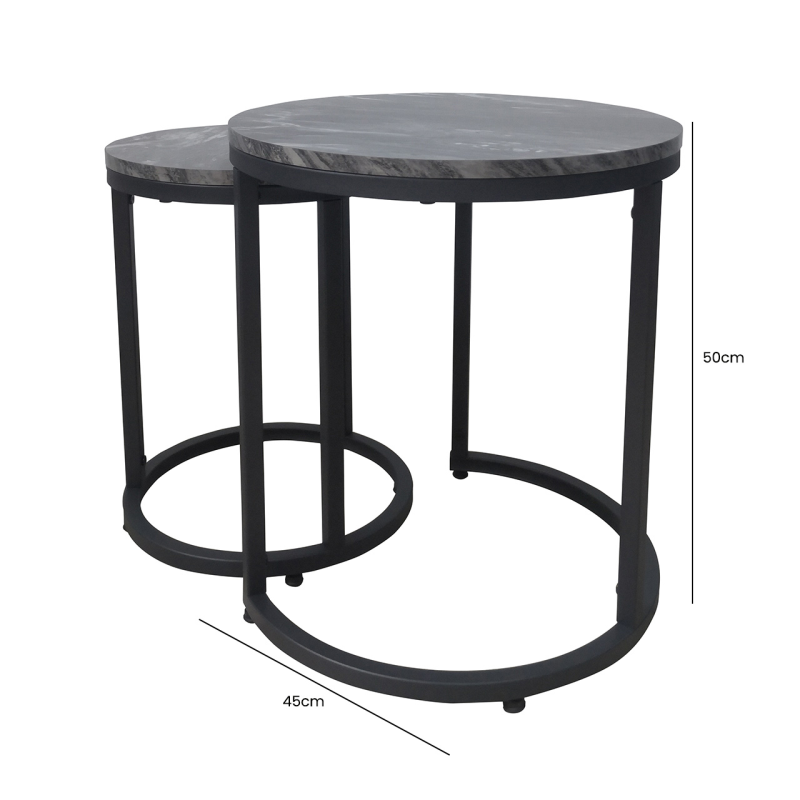 This set of end tables offers a perfect combination of modern design and practicality, providing versatile solutions for your everyday needs. Each end table in the set is crafted with a sturdy black metal frame, ensuring durability and stability for long-lasting use. The sleek black finish adds a touch of elegance and sophistication, making them a seamless fit for any contemporary or minimalist interior.