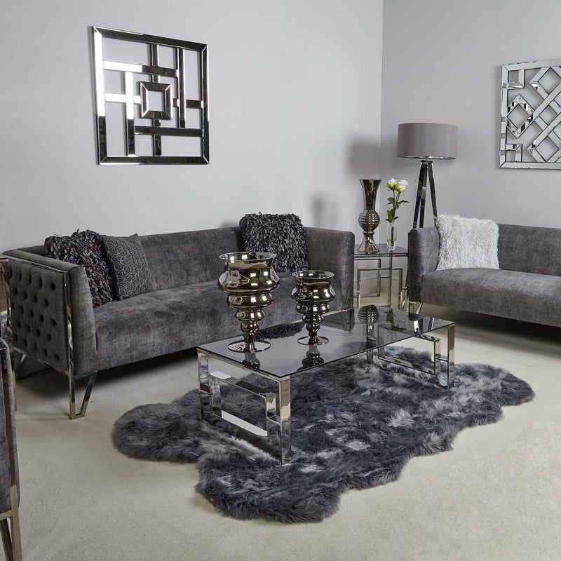 The Value Imperia Coffee Table is a cutting-edge modern design with a gorgeous stainless steel frame and a mirrored finish. This coffee table also has a cross over diamond shaped base that adds flair to the design. The table has a fitted transparent glass top that complements the table's modern look.