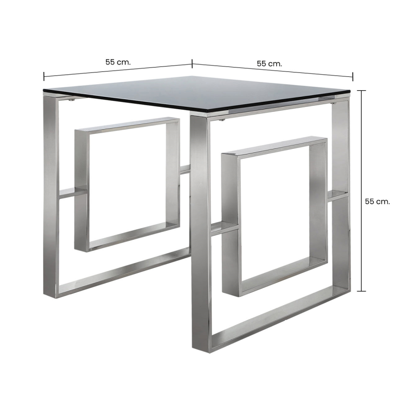 Bring a glamorous touch to your living room with the Value Apex chrome end table. Comprising of a steel chrome effect frame showcasing a bold geometric design on the table ends, it is completed by a tempered smoked glass table top. Also perfect as lamp/sofa/bedside/display/occasional tables