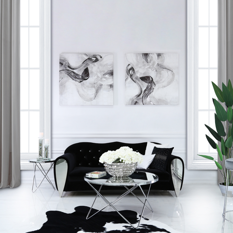 The Atti end table, with its crisscross design, will add a sleek contemporary appeal to any home. Its chrome base and mirror glass table top make it ideal for use as a lamp, sofa, nightstand, display, or occasional table.