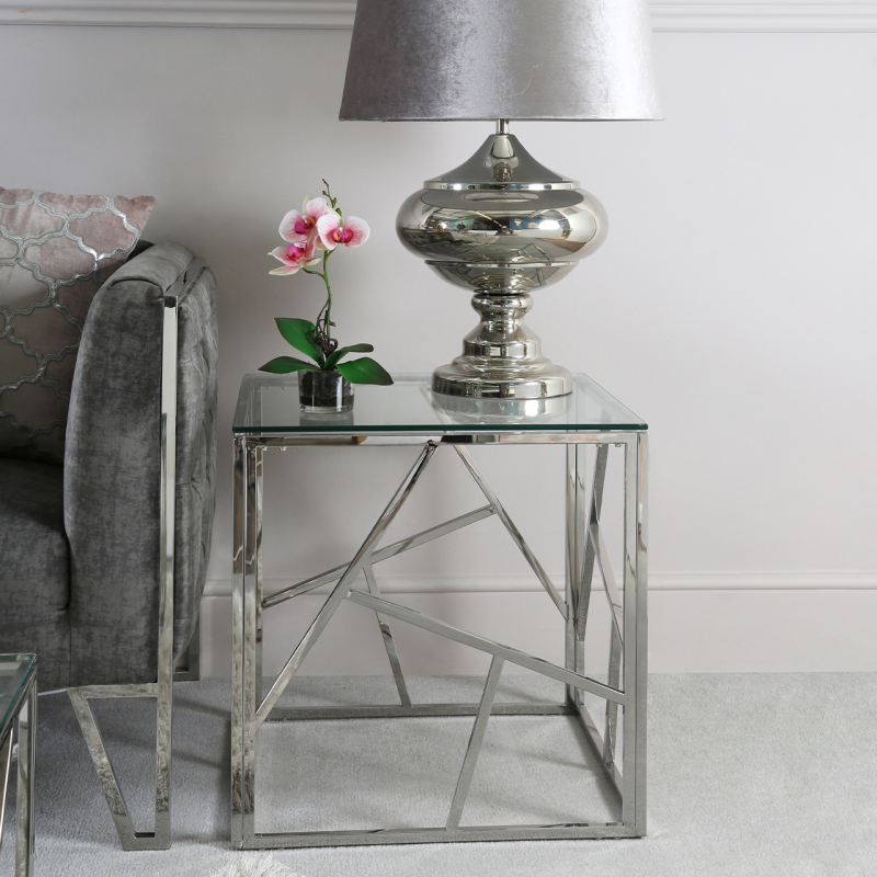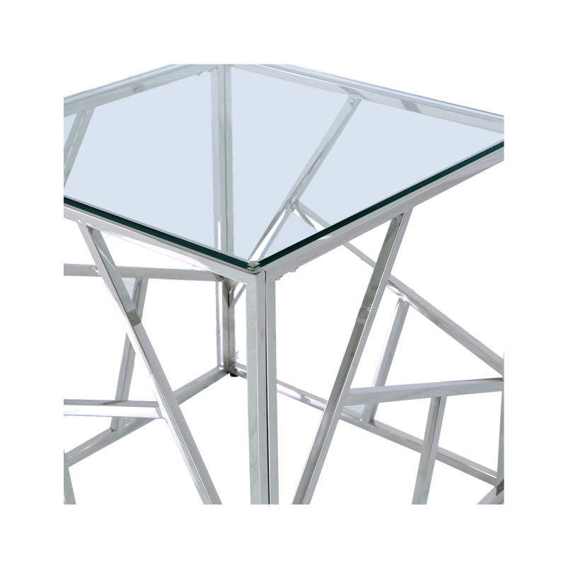 The Azaria end table has a geometric modern style design with a stainless steel finished stainless steel construction for a sleek aesthetic. Ideal for use beside the sofa or bed in the living room or bedroom. Table lamps, flower vases, beautiful ornaments, and other items can be placed here.
